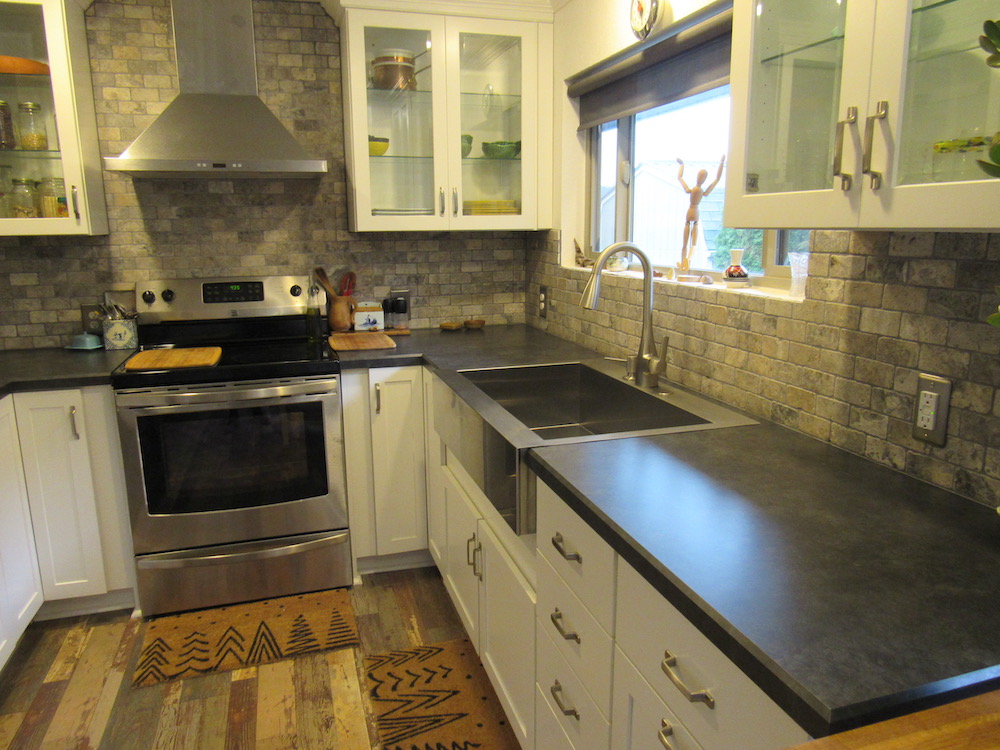 It is unfortunate but we see homeowners stranded by other contractor all too often, this local Artist was no different! This classic 1950's home In Felida called out for a design that honored the past character while bringing in a new modern warmth. Maximizing depth and space with this small kitchen was accomplished by using bright cabinets and glass fronts on all upper cabinetry. Our client is so excited and grateful to be back in their kitchen and to have found a trustful partner to get this project over the finish line.